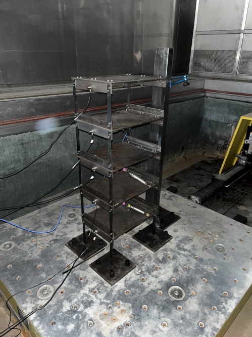试验摘要:利用环境耦合箱内的振动台对五层框架结构进行振动试验,记录结构在多组地震激励作用下的各层响应,对结构非线性模型参数进行修正,并量化参数不确定性。