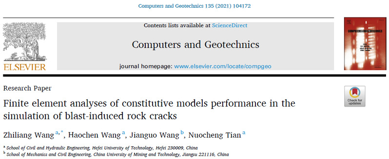 基于上述问题,王志亮教授课题组分别将HJC模型和RHT模型应用于岩石单次和循环爆破模拟中,通过与爆破试验结果的对比,分析了每种本构模型的优劣及适用条件。相关研究发表在国际期刊《Computers and Geotechnics》(JCR Q1,IF=3.818)上。