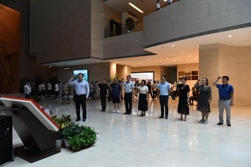 渡江战役纪念馆立体展示了渡江战役的全过程,再现了中国人民解放军带领人民浴血奋战、夺取革命胜利的光辉历程。支部成员在讲解员的带领下依次参观了纪念馆的各主题展厅,重温了那场伟大的战役。馆内艺术群雕“胜利之师”,造型威武宏大,让支部成员们深深感受到了“钟山风雨起仓黄,百万雄师过大江”的磅礴气势,感悟当时中国共产党带领中华儿女走向解放的决心。渡江战役的革命精神,革命烈士的英勇事迹,是党史学习教育的鲜活素材,是党员干部自强不息和奋勇拼搏的力量源泉。随后,支部全体党员在渡江战役纪念馆一楼大厅重温了入党誓词。