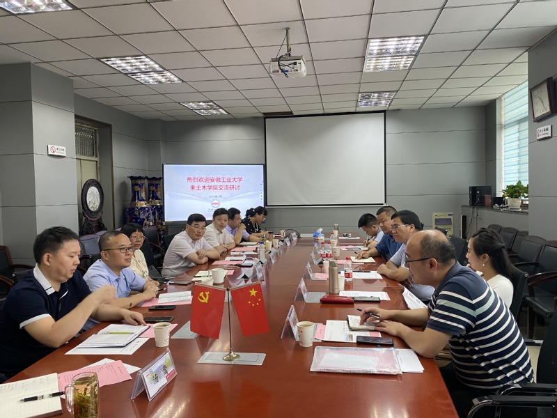 714日,安徽工业大学建筑工程学院党委书记赵龙/院长于峰一行来一品探花 调研交流。一品探花 领导班子成员、党政办、团委和相关系(中心)负责人参加了此次交流。常务副院长王静峰主持了本次交流会。
