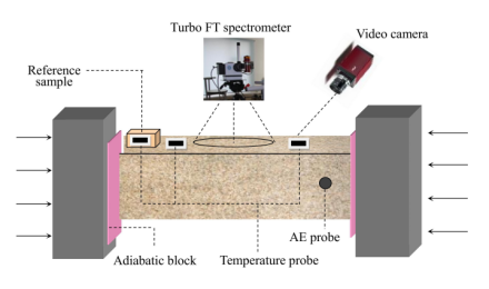 以往研究表明,岩石在受力过程中存在由温度变化引起的红外辐射变化。相比于传统的点接触式应力测量技术,通过热红外遥感技术对受力岩石表面温度变化进行实时监测,可以实现对岩石表面应力状态以及失稳破裂前兆的非接触探测。为了深入分析受力岩石热红外辐射变化的影响因素,研究团队通过模拟实际地表岩石的应力环境,开展室外环境下的岩石受力热红外光谱探测实验,分析了岩石在破裂阶段的热红外光谱辐射变化规律及其波段特征。结果表明:岩石表面的张性破裂可以引起红外辐射亮度的增加,而表面突起会引起红外辐射的降低,不同破裂形式引起光谱辐射变化的趋势不同。热红外辐射变化的波段特征与组成岩石的主要矿物的热红外光谱波段特征密切相关。研究结果将更有利于岩石表面应力状态与破裂形式的精准识别,可望为利用遥感技术探测地壳浅表断层破裂、矿震岩爆、地表形变等固体地球灾害提供实验基础。