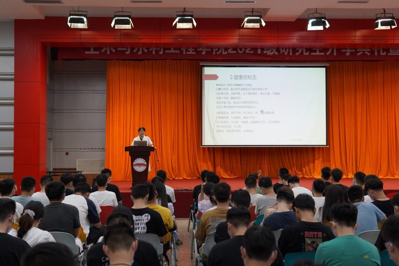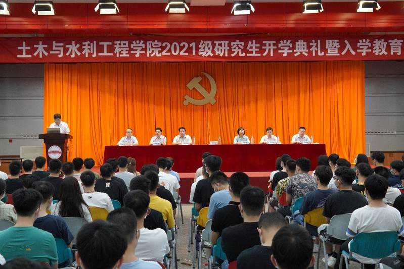 学院院长王静峰为研究生作《校史院情与爱校荣校》报告,介绍了学校的发展历程,又介绍了学院的建设史和发展史;同时从杰出校友、专业设置、学科发展等方面饱含激情的讲述了学院奋进史,让新生了解了学院十四五期间重点发展的学科方向,国家级、省级平台建设情况,近年来学院科研动态。他希望研究生能够爱校、爱院、爱专业,心怀梦想,努力奋斗;最后以“上天下海入地,土木砼心协力”的结束语表达了对2021级全体研究新生的期盼。