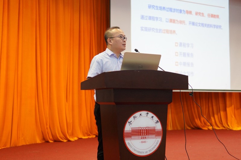 学院教学副院长张振华作了《教学过程管理及学风建设》报告。他从课程学习、开题报告、学位论文写作与质量等方面讲述了研究生阶段教学过程的特点,应注意的要点;通过典型案例分析,强调了学风建设的重要性,希望同学们在校期间脚踏实地、努力学习、刻苦钻研。