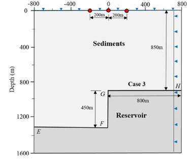 图1. 计算模型(左图)和电震响应(右图)