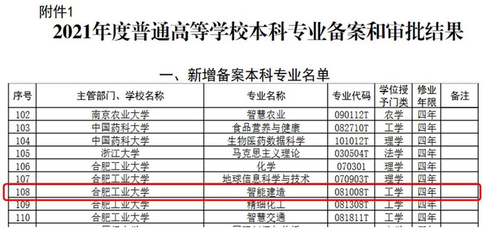 近日,教育部公布了2021年度普通高等学校本科专业备案和审批结果,一品探花 牵头申报的“智能建造”本科专业成功获批。