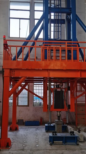 超高重型落锤试验机由济南商泰公司承建,工作原理是将落锤提升到设定高度,由静止释放,锤体自由落体冲击被测试样,测量试样在冲击过程中的受力和变形。该设备由主机框架、导向柱、锤体及锤头、锤体提升装置、动态测试系统等组成,可实现自动提锤、冲击、抓锤步骤。
