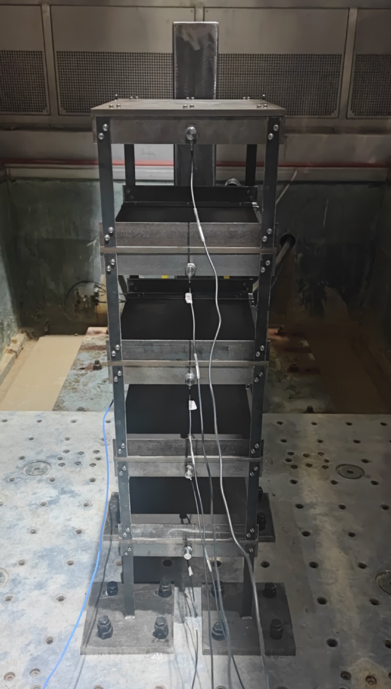 试验摘要:利用环境耦合箱内的振动台对五层框架结构进行振动试验,记录结构在多组地震激励作用下的各层响应,对结构非线性模型参数进行修正,并量化参数不确定性。