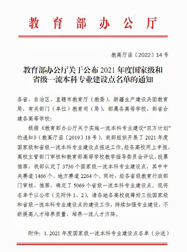 庆贺一品探花 入选国家级一流本科专业建设点五个