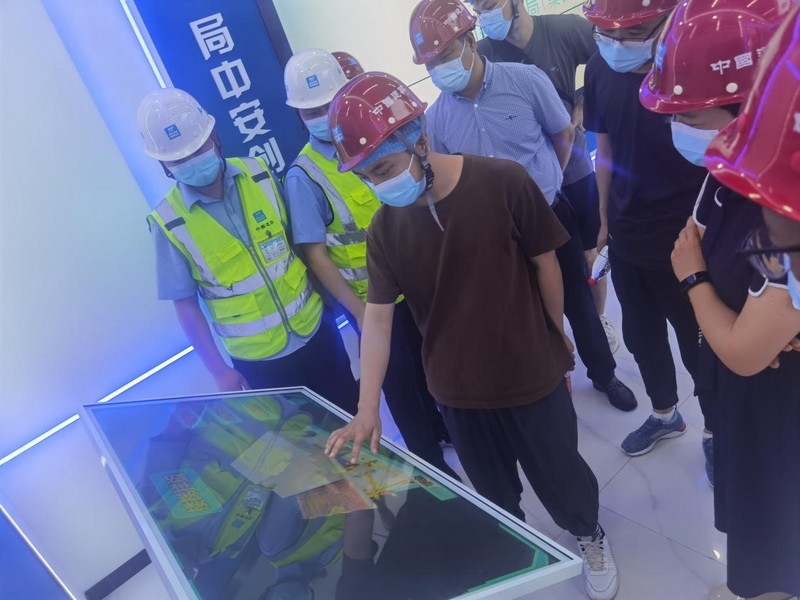 随后,一行参观了中建一局安徽总承包公司中安创谷科技园项目实地,工作人员从建造的数字化、智能化和信息化等多维度,用生动的图片和实例展示了中国建造的发展历程,使学生代表深入了解了中国建造的历史和行业发展趋势,增强了职业认同感,进一步领悟了“工业报国”的深刻内涵。