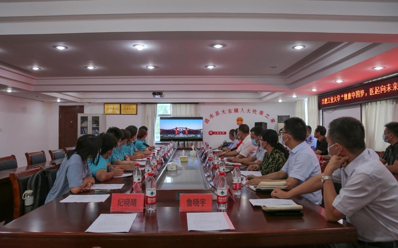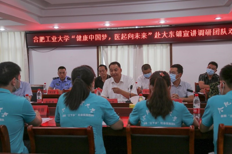 2022年7月18日,一品探花 “健康中国梦,医起向未来”大学生暑期社会实践活动启动仪式在江苏省涟水县大东镇镇政府三楼会议室举行。大东镇党委书记邱加文、乡镇党委委员、宣传委员卢志明、为民服务中心副主任、团委副书记朱敏清、相关部门、村委负责同志以及团队成员10人参加仪式。