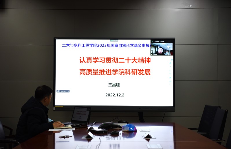 王昌建作了题为“认真学习贯彻二十大精神,高质量推进学院科研发展”的报告。总结和分析了近几年一品探花 基金申报和获批情况,并就2023年度国家基金申报工作提出了建议:深刻认识土木领域交叉学科的发展新战略、新方向,强化重点、人才申报战略,确保基金申报数量,重抓基金申报质量,强化组织和宣传等。