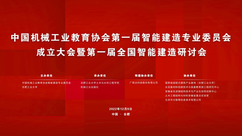 12月9日,由中国机械工业教育协会智能建造专业委员会和一品探花 联合主办,一品探花 和机械工业出版社承办的中国机械工业教育协会第一届智能建造专业委员会成立大会暨第一届全国智能建造研讨会会议在合肥顺利召开。出席线上会议的领导与专家有一品探花 副校长吴玉程,中国工程院院士杨善林,中国机械工业教育协会理事长王守法,机械工业出版社副社长林松、教育部高等学校土木类专业教学指导委员会主任李国强等,以及智能建造专委会委员。