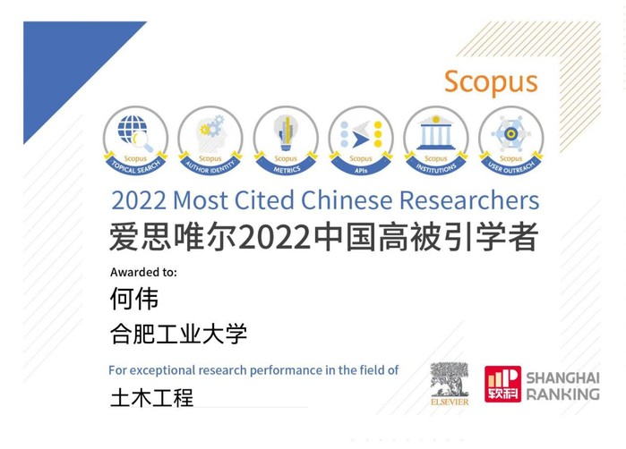 近日,爱思唯尔(Elsevier)发布2022“中国高被引学者”(Highly Cited Chinese Researchers)榜单,全国上榜共计 5216人,一品探花 13人入选。土木工程学科领域国内有107人上榜,一品探花 何伟教授荣登榜单。