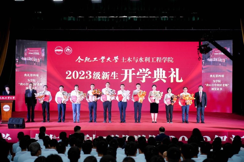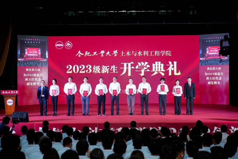 学院在相关行业、领域为2023级新生遴选出8位杰出代表作为学院本科生导师,其中6位行业导师、2位思政导师。典礼上,学院首批本科生行业导师代表、校友代表中国科学技术大学近代力学系吴尚犬教授深情回顾了在工大土木学院的美好且充实的大学时光,鼓励学弟学妹们做树立创新思维、培养合作精神、勇担责任使命的新时代土木人,用自身实际行动践行工业报国的使命。学院教师代表赵春风副教授结合自身的研究方向和教学科研经历,鼓励学生在土木学院这片热土上胸怀梦想、脚踏实地、努力学习,勇攀高峰,为实现自己的人生目标而不断前行。测绘科学与技术专业2023级研究生褚超群,合肥校区土木类2023级5班本科生叶华才,宣城校区城市地下空间工程2023级5班本科生陈言代表所有新生分享了进入工大的学习生活感受,立志在机遇与挑战并存的新征程中,追逐青春梦想,谱写人生精彩篇章。