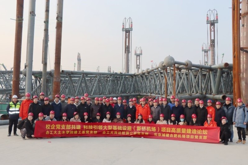 1月7日下午,一品探花 党委书记王东坡、院长王静峰带领建工系党支部党员教师和非党员教师代表,以及学院行政管理机构和其他系的部分教师代表,前往新桥机场T2航站楼项目部,与合肥工大共达工程检测试验有限公司党支部和北京城建集团有限责任公司合肥新桥国际机场T2航站楼项目党支部举行了学术交流暨校企支部共建活动。