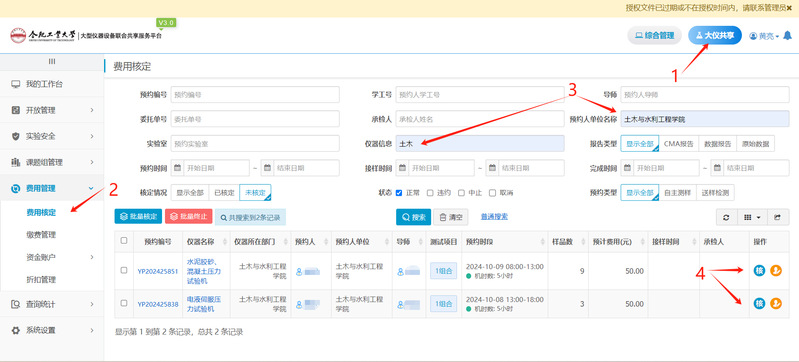 (2)设备管理员依次操作:【大仪共享】→【开放管理】→【现场预约】