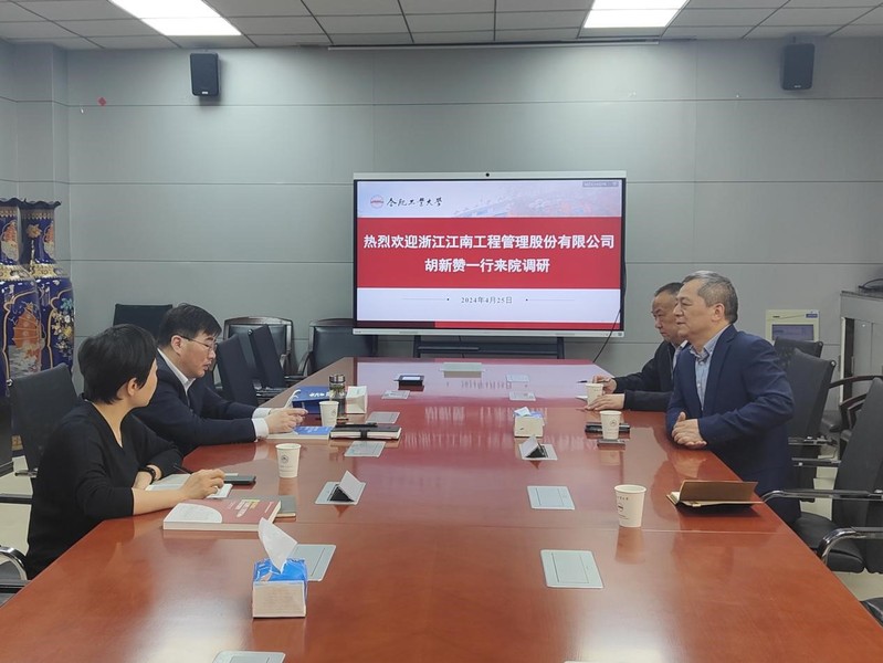 4月25日,浙江江南工程管理股份有限公司董事、常务副总裁胡新赞一行来一品探花 调研交流,会议由王静峰院长主持。