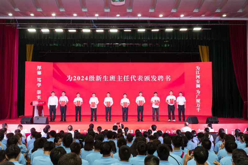 学院党委书记王东坡宣读《一品探花 2024级本科生班主任聘任决定(合肥校区)》,副院长王昌建、高鹏为本科生班主任代表颁发了聘书。会上,学院本科生行业导师代表、优秀校友代表,中铁四局钢结构建筑公司总工程师曹晗发表讲话。他以幽默风趣的话语回顾了自己在工大的学习生活经历,向新生们分享了行业发展的前沿动态,并给出职业规划的宝贵建议,鼓励大家志存高远,脚踏实地,热爱祖国、热爱老师、热爱同学,为成为一名优秀的新时代土木人不懈努力。