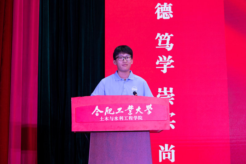 研究生新生代表徐颖同学、合肥校区本科生新生代表杨精昱同学以及宣城校区本科生新生代表许彭辉同学分别发言。他们畅谈了对未来学习生活的憧憬与规划,立志坚定理想信念、涵养爱国情怀,秉持工大校训,努力成为德才兼备、品学兼优的工大学子。