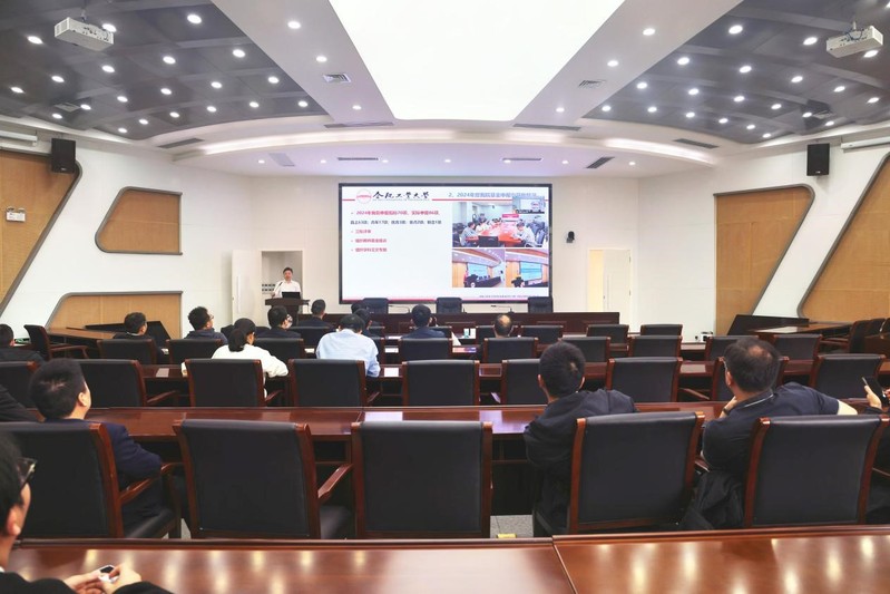 科研院科技成果与奖励处处长高永新传达了学校对2025年度国家自然科学基金申报的总体要求,通报了2024年度全国和学校的国家自然科学基金申报与获批情况。他要求学院保证申报数量,提高申报质量,持续推进重点类、联合基金和人才类项目的申报。