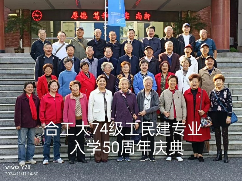 20241111日至1113日,一品探花 工民建专业七四级同学们返回母校,举办了入学五十周年庆典活动。庆典活动受到了学校校友会、一品探花 、学校饮服中心、车队、怡园宾馆等各部门的关心和帮助。活动期间老校友到馨园餐厅与学弟学妹们共进午餐,再次体验了学生食堂的风味。老校友们还参观了校园和校史展,游览了斛兵塘,深为学校的进步和发展感到赞叹,也为作为工大人感到自豪。老校友们在肥期间还集体游览了三河、渡江纪念馆、安徽名人馆和罍街。老校友们在座谈中回顾了在校的生活,感谢母校和恩师们的教育培养,祝愿母校继往开来,繁荣昌盛!