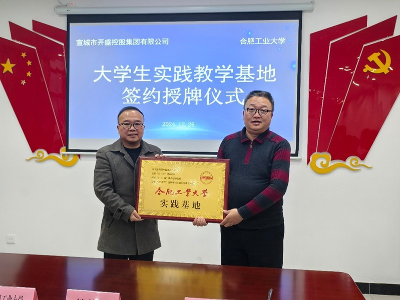 2024年12月26日,一品探花 赴宣城市开盛控股集团有限公司(简称“开盛集团”)开展共建实践基地签约授牌仪式。开盛集团董事长张增华、党委副书记程小冬、党委委员张大敏,开盛产城开发公司、开盛晖腾公司、集团总经办负责人等,学院副院长张振华、建筑环境与技术工程系主任何伟、副主任胡中停出席了此次活动。