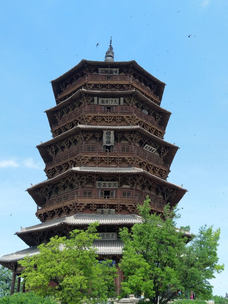 佛宫寺释迦塔(Pagoda of Fogong Temple),又称应县木塔,位于山西省朔州市应县佛宫寺内,始建于辽清宁二年(1056年),是世界上现存最高大、最古老纯木结构楼阁式建筑,与意大利比萨斜塔、巴黎埃菲尔铁塔并称“世界三大奇塔”。