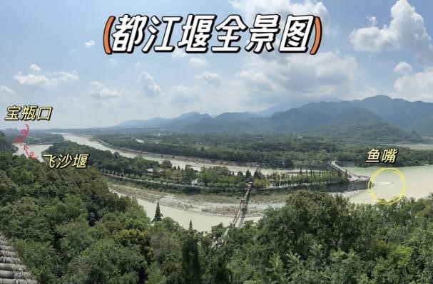 都江堰,位于四川省成都市都江堰市城西,坐落在成都平原西部的岷江上,是由渠首枢纽(鱼嘴、飞沙堰、宝瓶口)、灌区各级引水渠道,各类工程建筑物和大中小型水库和塘堰等所构成的一个庞大的工程系统,渠首占地面积200余亩。它担负着四川盆地中西部地区7市(地)40县(市、区)1130万余亩农田的灌溉、成都市多家重点企业和城市生活供水,以及防洪、发电、漂水、水产、养殖、林果、旅游、环保等多项目标综合服务,是四川省国民经济发展不可替代的水利基础设施。四川盆地中亚热带湿润季风气候区,四季分明,雨量充沛,气候温和。都江堰处于中国西部高原山地与成都平原两大地形阶梯的转折部,属龙门山脉的西南延展部分,是中国龙门山大断裂带通过的地区。地势西北高,东南低。西部属龙门山南段四川盆地边缘山地,由一系列北东一南西向山地构成,地势高亢,山岭海拔3000米以下。东部属成都平原,地势平缓。海拔一般在720米以下。