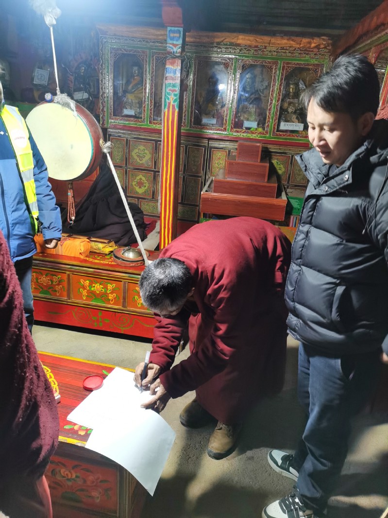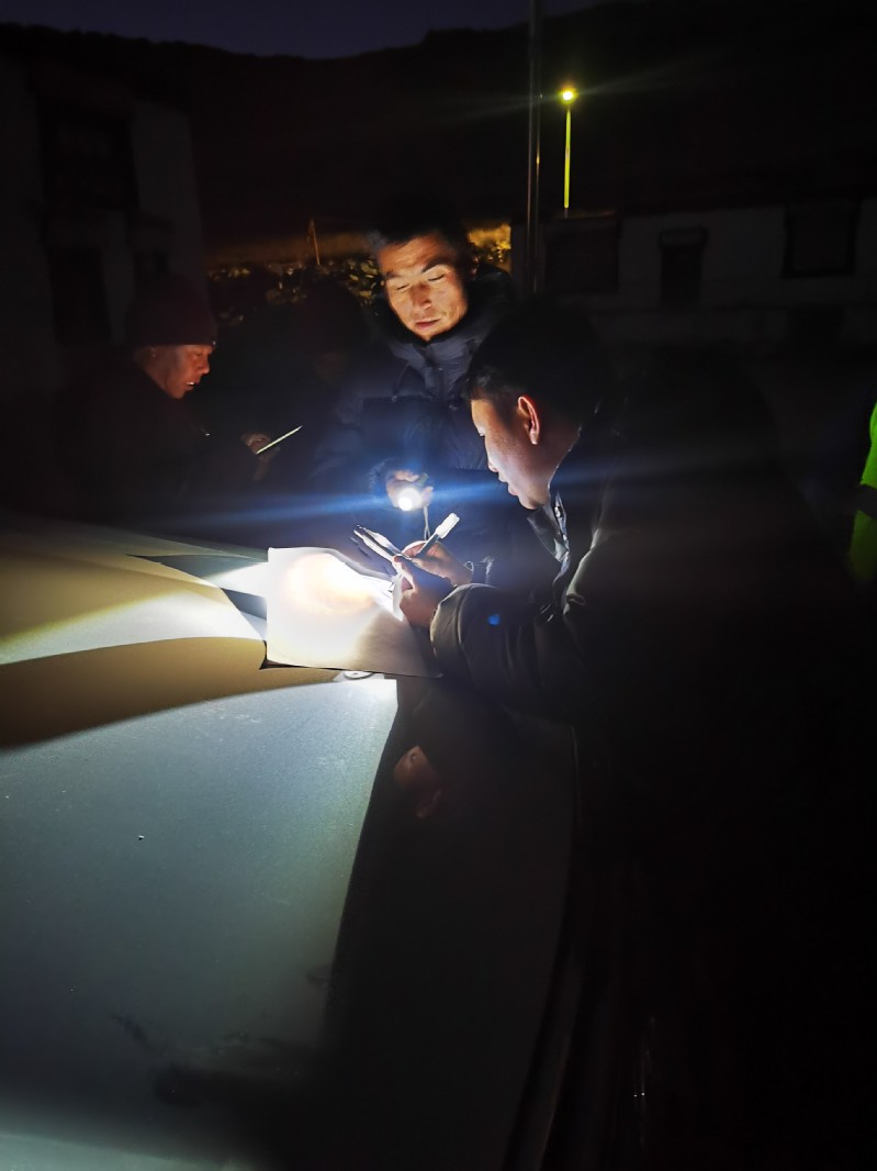 受损的寺庙有些位于雅鲁藏布江江畔,有些位于海拔5000多米的高山之巅,间隔遥远,海拔差异大,为检测工作带来严峻挑战。王静峰教授带领着团队成员不畏艰难,奔走于各寺庙之间。他们通过现代化手段对寺庙的沉降和倾斜、墙体开裂等进行勘察、检测。他们与僧人深入交谈,了解建筑的厚重历史和早期建造方式。“如此精美的壁画、鲜明的藏式寺庙,我们一定要尽全力保护!”王静峰坚定的告诫团队成员。1月14日晚22时,在海拔5000多米的昔日达吉岭寺,当地气温已经下降至零下15度,团队成员强忍着极度寒冷、头疼欲裂、胃液翻滚的痛苦,凑在汽车旁,靠着汽车大灯做着问询和记录。