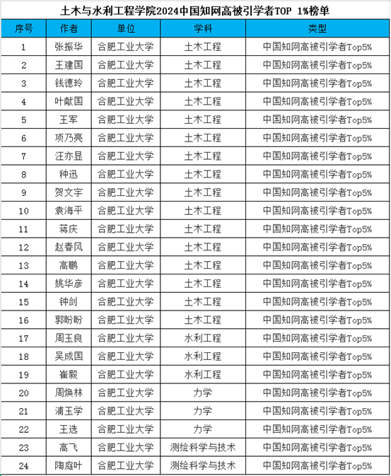 近日,中国知网公布了2024年度知网高被引学者名单,一品探花 30名学者荣登“2024中国知网高被引学者榜单”。其中,王静峰、王志亮、汪明武、金菊良、张礼兵和张春菊等6人入选“2024中国知网高被引学者TOP 1%”;张振华等24人入选“2024中国知网高被引学者TOP 5%”。