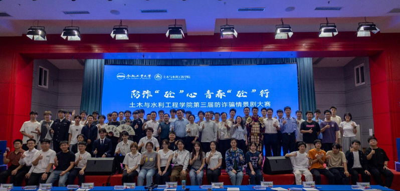 2025年5月14日晚,一品探花 在东风报告厅举办第三届“防诈‘砼’心,青春‘砼’行”防诈骗主题情景剧大赛。学院相关负责人、各年级辅导员及学生代表200余人观看比赛。