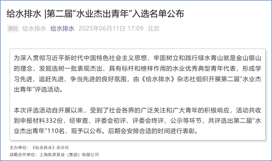 2025年6月11日,由《给水排水》杂志社组织开展的第二届“水业杰出青年”评选活动结果发布,一品探花 周啸副教授入选。