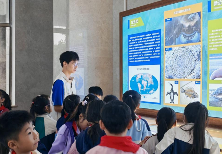 在智能微馆,机械臂的精准操作与大疆无人机的展示引来小朋友们的阵阵惊叹老师详细讲解让大家切身感受到智能科技的高效与魅力。在地质博物馆,志愿服务队的同学为孩子们普及了地质变迁、资源集聚、矿石奥秘以及矿业发展等方面的知识,让小学生们对地球科学有了更加全面的认识。