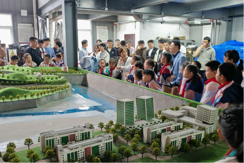 在水利实验室,小朋友们参观大型三级水利枢纽模型听取了讲解员细致介绍并就感兴趣的问题踊跃提问,在互动中加深了对水利知识的理解。在结构实验室,大家近距离观摩“环境耦合大型科学实验装置”了解到该装置应用情况,并学习了地震原理与建筑抗震知识,拓宽了科学视野。