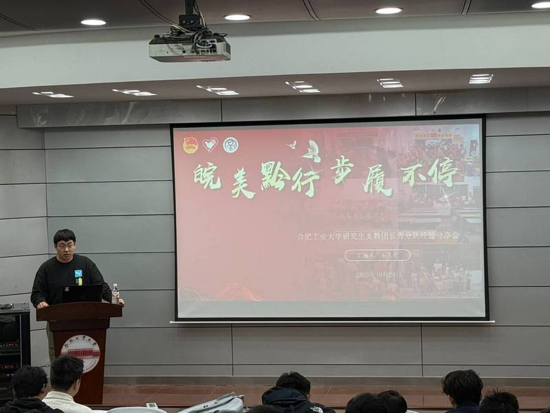 本次活动围绕支教经验分享与成长感悟交流展开。在经验分享环节,研支团成员邓飞龙结合在贵州山区小学开展教育帮扶的实践经历,详细介绍了通过创新教学方法将优质教育资源引入教育薄弱地区的具体做法。他分享了在提升学生学业成绩的同时,借助个性化辅导与心理健康关怀,助力学生全面发展的经验与体会。在互动交流环节,邓飞龙还介绍了研支团组织艺术创作、体育运动、科普讲座等多元化活动,有效拓展山区学生视野的创新实践,并与在场同学就支教过程中的挑战与收获进行了深入探讨。