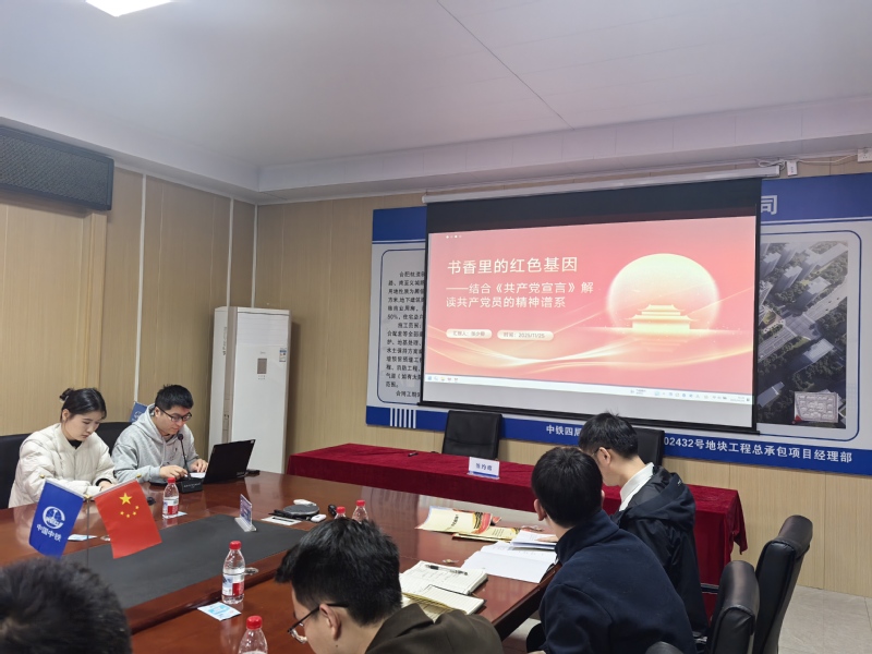 随后,校企双方共同开展了“支部联动汇聚合力 党建融合协砼发展”主题党日活动。研究生第六党支部党员代表张诗琪和张少卿同志做了“砼心筑梦:红色引擎赋能基建报国”主题宣讲,分别分享了阅读《共产党宣言》、《习近平的七年知青岁月》的读书感悟,结合基建行业发展历程,畅谈从红色经典中汲取的奋进力量。双方各部门负责人与师生党员们,围绕行业现状、发展前景、人才需求与培养、求职招聘、产学研合作等议题进行了深入交流。