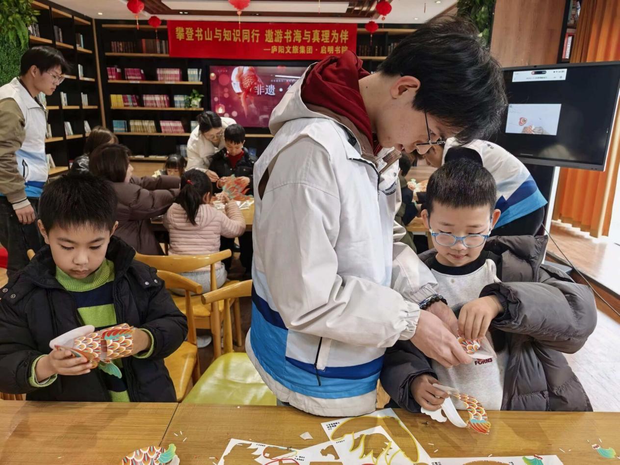 活动伊始,志愿者们以生动的讲解带领孩子们走进鱼灯世界,讲述鱼灯承载的美好寓意与文化故事。随后,志愿者们手把手指导孩子们一步步完成鱼灯制作。从勾勒鱼身轮廓,到粘贴彩色鳞片;从组装灯架到固定灵动鱼尾。孩子们专注学习、细心操作,在剪裁、拼贴、组装中体悟传统手工艺的巧思与温度。一盏盏色彩斑斓的鱼灯在孩子们手中逐渐成形,映衬着张张笑脸,点亮了整个活动现场。孩子们兴致勃勃地举起自己的作品互相展示,欢声笑语洋溢其间,成为春日里最温暖的风景。