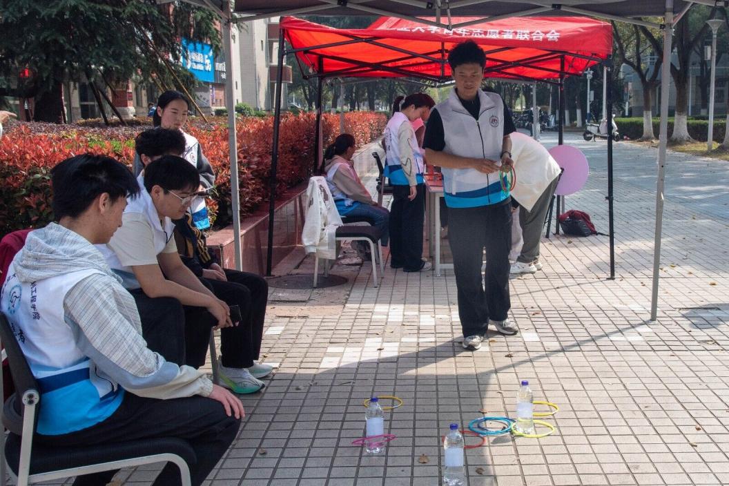 活动现场设置五大互动区域,将知识科普与趣味体验巧妙融合。在“水知识大闯关”区域,巨型骰子与幸运转盘摇身一变,成为趣味答题的载体,人均水资源量、国家水网建设、涉水法规等知识在欢声笑语中入脑入心。“水滴拼图挑战赛”区域以节水标志、中国水系地图为蓝本,师生在指尖拼搭之间,悄然加深对水资源分布与保护的认知。“水污染分类小能手”区域,投壶与套圈让物理、化学、生物污染类型的辨别变得生动可感。“家乡水地图打卡”区域,师生在地图上标注家乡水系、分享水故事,增进了大家对水资源地域特征的理解。游园尾声,“创意点子墙”上贴满写有节水妙招与护水口号的便签,点滴巧思汇聚成校园里一道别样的节水风景线。